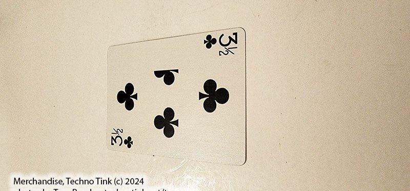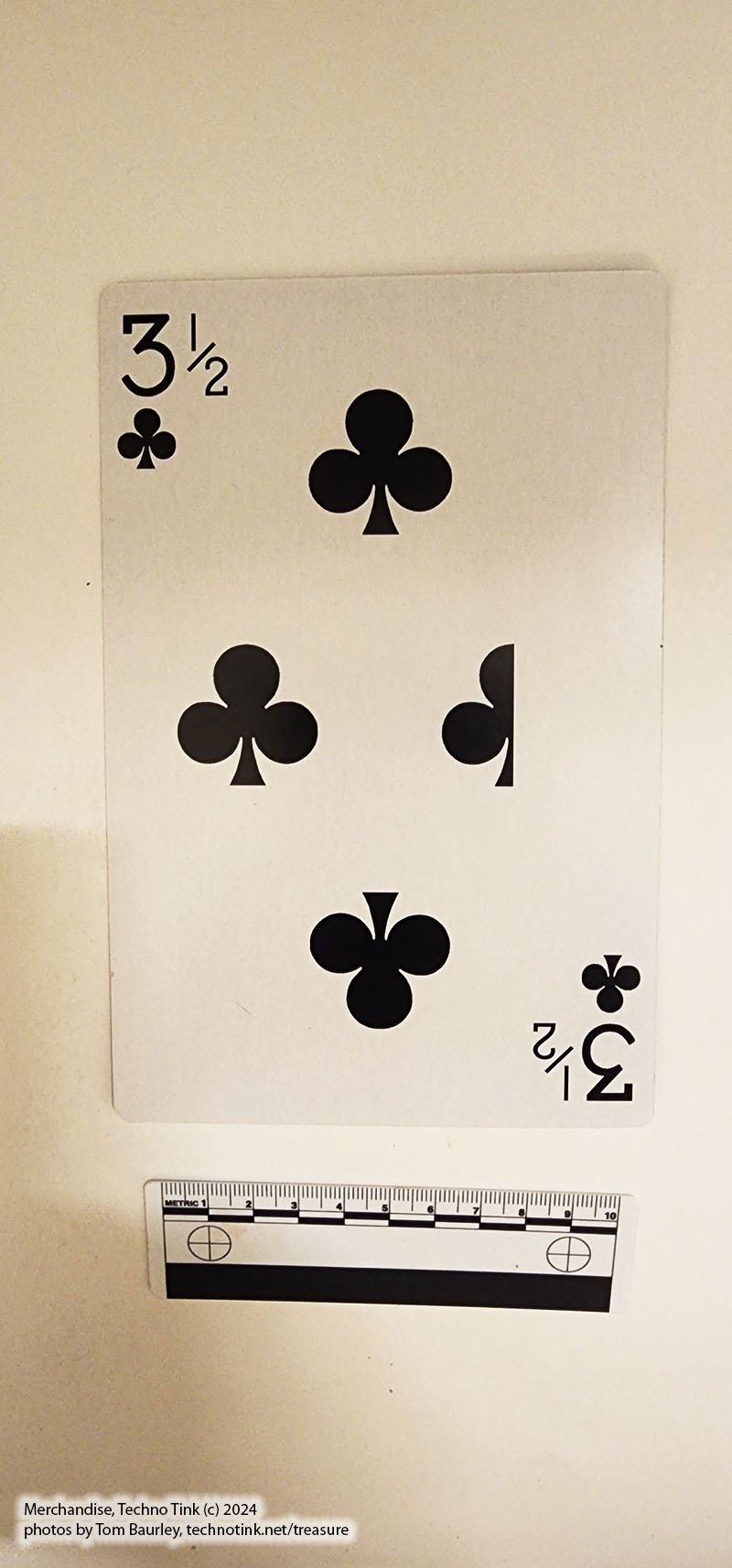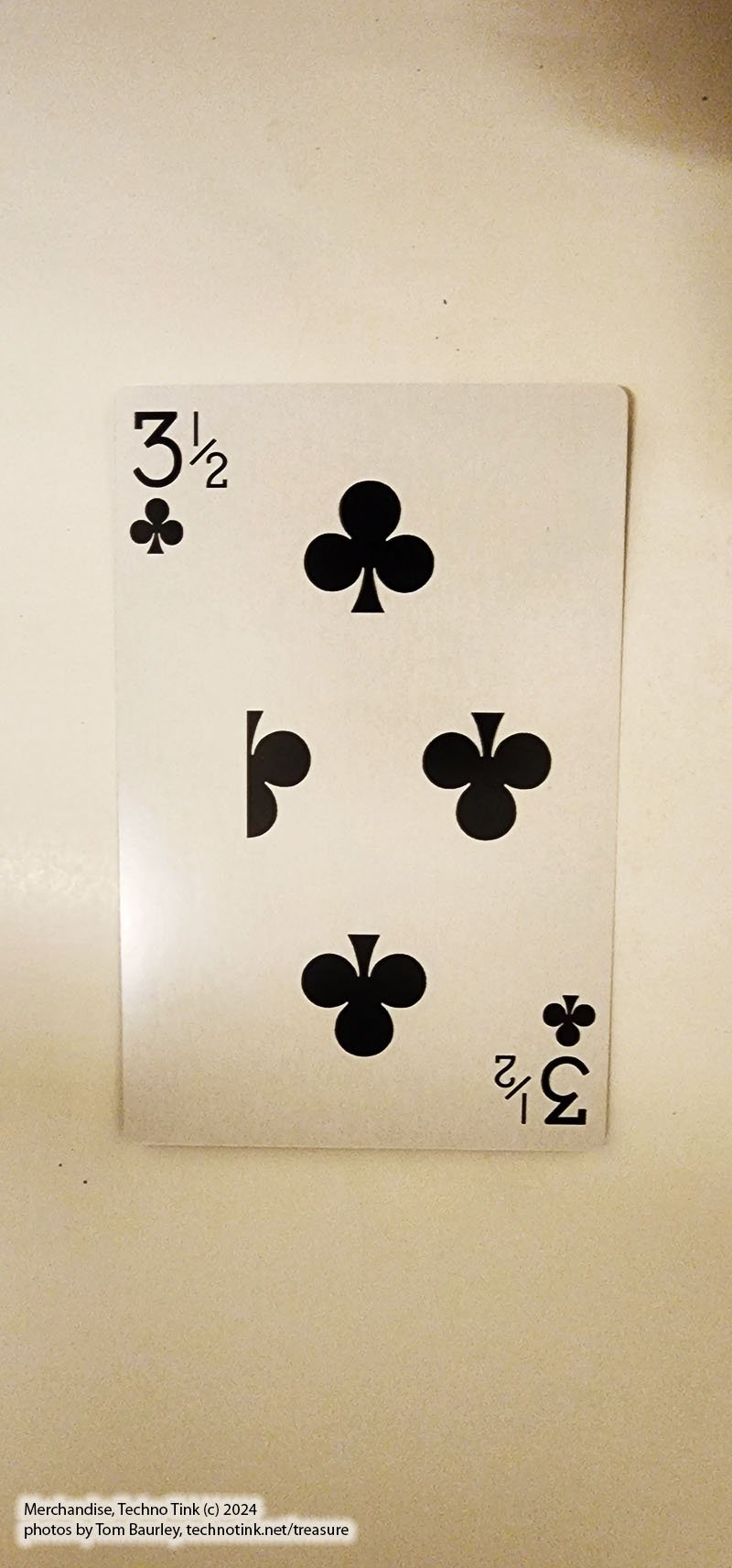 1 individual playing card specially printed Three and a Half of Clubs.